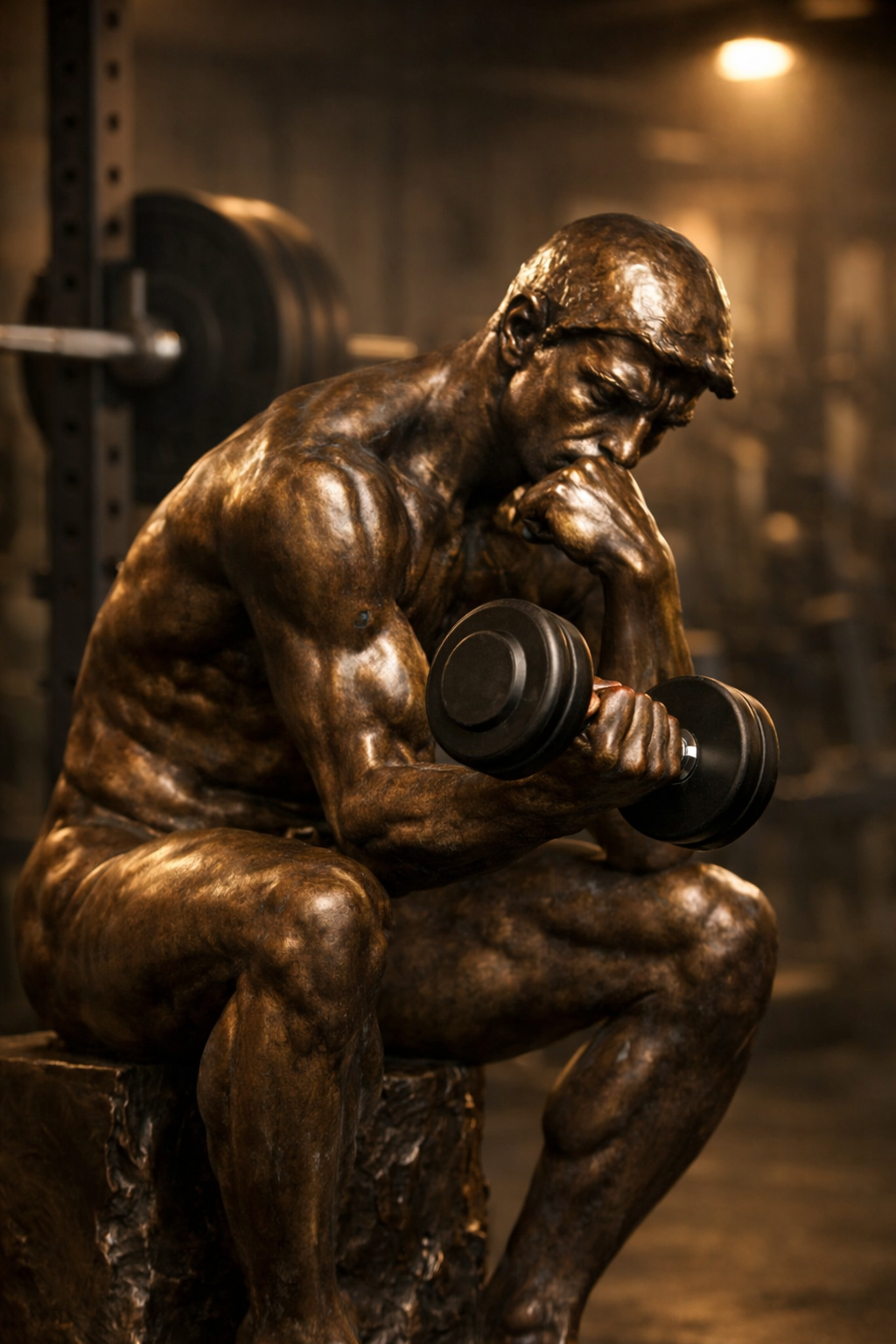 The gastrocnemius and soleus—the calf muscles—are among the body's largest and most metabolically active muscle groups. During resistance training, they are prolific myokine secretors. Irisin, released from contracting muscle via FNDC5 cleavage, crosses the blood-brain barrier and upregulates BDNF expression in the hippocampus. BDNF drives neurogenesis, synaptic plasticity, and long-term memory consolidation. A 2015 study in Gerontology following 324 female twins over 10 years found that leg muscle power—driven primarily by the quadriceps and calves—was the strongest predictor of cognitive change, outperforming every other lifestyle factor measured. Greater leg strength at baseline predicted significantly less brain aging a decade later. Big calves, big brains. Joe was right. (I posted a photo on Instagram in Rodin's Thinker pose after that session, hoping it worked in reverse—that my deep thoughts might grow my calves. The jury is still out.)